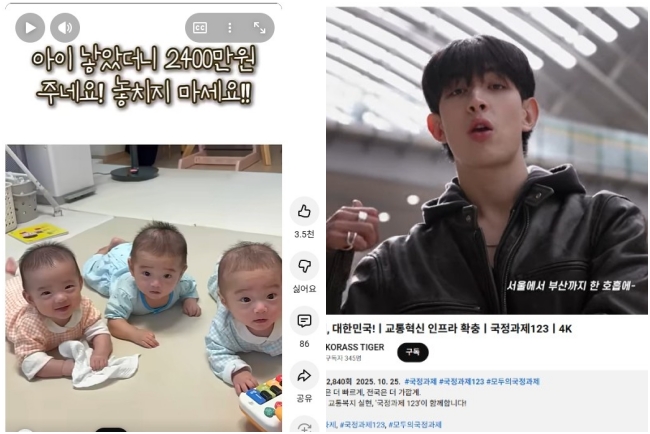 영상 부분 대상을 받은 `아이 낳았더니 2,400만 원 주네요! 놓치지 마세요!!`(왼쪽), 영상 부문 최우수상을 받은 `새롭게 대한민국!`(강범철 · 김진영 · 고원지 · 서재은)