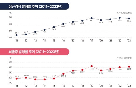 뇌졸중 · 심근경색 발생률 추이(2011-2023)